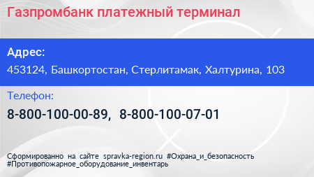 Газпромбанк, платежный терминал по адресу 453124, Башкортостан, Стерлитамак, Халтурина, 103 в дальнейшем Организация, размещена в следующих категориях: