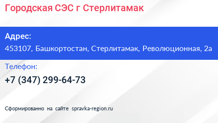 Городская СЭС, г. Стерлитамак по адресу 453107, Башкортостан, Стерлитамак, Революционная, 2а в дальнейшем Организация, размещена в следующих категориях: