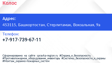 Колос по адресу 453115, Башкортостан, Стерлитамак, Вокзальная, 9а в дальнейшем Организация, размещена в следующих категориях:
