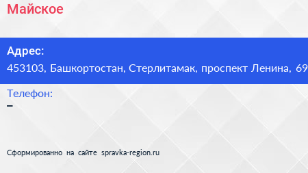Майское по адресу 453103, Башкортостан, Стерлитамак, проспект Ленина, 69 в дальнейшем Организация, размещена в следующих категориях: