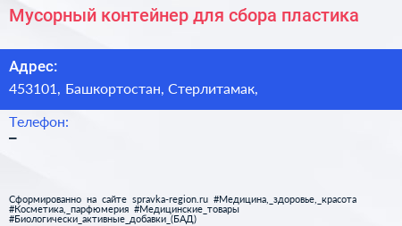Мусорный контейнер для сбора пластика по адресу 453101, Башкортостан, Стерлитамак, в дальнейшем Организация, размещена в следующих категориях:
