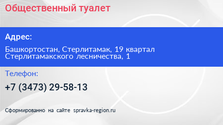Общественный туалет по адресу Башкортостан, Стерлитамак, 19 квартал Стерлитамакского лесничества, 1 в дальнейшем Организация, размещена в следующих категориях: