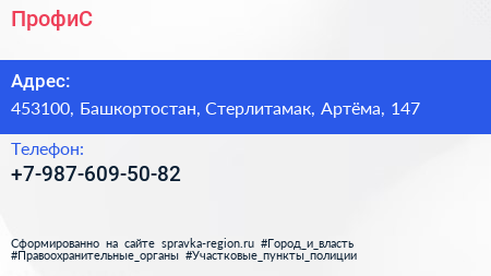 ПрофиС по адресу 453100, Башкортостан, Стерлитамак, Артёма, 147 в дальнейшем Организация, размещена в следующих категориях: