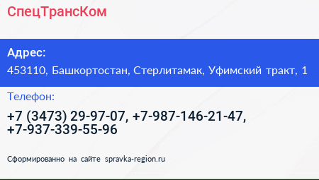 СпецТрансКом по адресу 453110, Башкортостан, Стерлитамак, Уфимский тракт, 1 в дальнейшем Организация, размещена в следующих категориях: