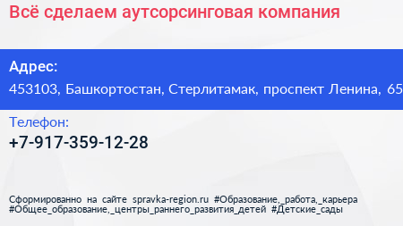Всё сделаем, аутсорсинговая компания по адресу 453103, Башкортостан, Стерлитамак, проспект Ленина, 65 в дальнейшем Организация, размещена в следующих категориях: