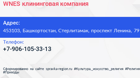 WNES, клининговая компания по адресу 453103, Башкортостан, Стерлитамак, проспект Ленина, 79 в дальнейшем Организация, размещена в следующих категориях: