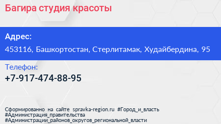 Багира, студия красоты по адресу 453116, Башкортостан, Стерлитамак, Худайбердина, 95 в дальнейшем Организация, размещена в следующих категориях: