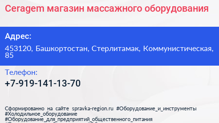 Ceragem, магазин массажного оборудования по адресу 453120, Башкортостан, Стерлитамак, Коммунистическая, 85 в дальнейшем Организация, размещена в следующих категориях: