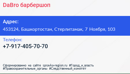 DaBro, барбершоп по адресу 453124, Башкортостан, Стерлитамак, 7 Ноября, 103 в дальнейшем Организация, размещена в следующих категориях: