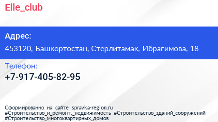 Elle_club по адресу 453120, Башкортостан, Стерлитамак, Ибрагимова, 18 в дальнейшем Организация, размещена в следующих категориях: