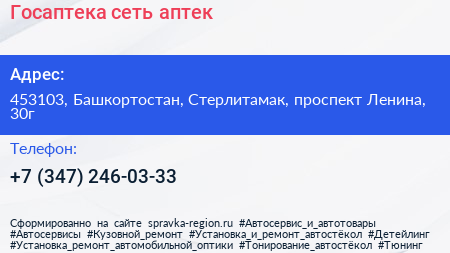 Госаптека, сеть аптек по адресу 453103, Башкортостан, Стерлитамак, проспект Ленина, 30г в дальнейшем Организация, размещена в следующих категориях: