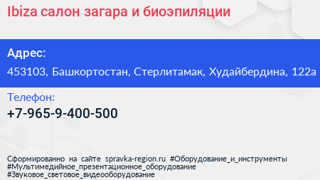 Ibiza, салон загара и биоэпиляции по адресу 453103, Башкортостан, Стерлитамак, Худайбердина, 122а в дальнейшем Организация, размещена в следующих категориях: