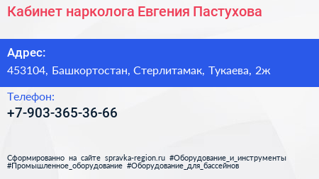 Кабинет нарколога Евгения Пастухова по адресу 453104, Башкортостан, Стерлитамак, Тукаева, 2ж в дальнейшем Организация, размещена в следующих категориях: