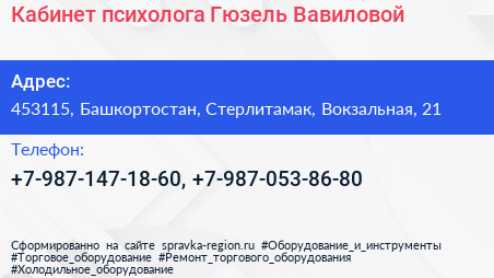 Кабинет психолога Гюзель Вавиловой по адресу 453115, Башкортостан, Стерлитамак, Вокзальная, 21 в дальнейшем Организация, размещена в следующих категориях: