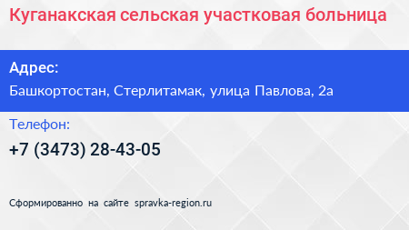 Куганакская сельская участковая больница по адресу Башкортостан, Стерлитамак, улица Павлова, 2а в дальнейшем Организация, размещена в следующих категориях: