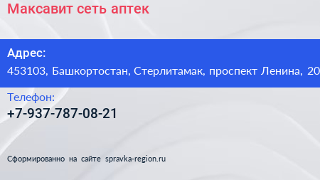 Максавит, сеть аптек по адресу 453103, Башкортостан, Стерлитамак, проспект Ленина, 20 в дальнейшем Организация, размещена в следующих категориях: