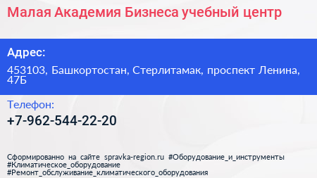 Малая Академия Бизнеса, учебный центр по адресу 453103, Башкортостан, Стерлитамак, проспект Ленина, 47Б в дальнейшем Организация, размещена в следующих категориях: