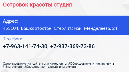 Островок красоты, студия по адресу 453104, Башкортостан, Стерлитамак, Менделеева, 24 в дальнейшем Организация, размещена в следующих категориях: