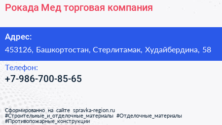 Рокада Мед, торговая компания по адресу 453126, Башкортостан, Стерлитамак, Худайбердина, 58 в дальнейшем Организация, размещена в следующих категориях: