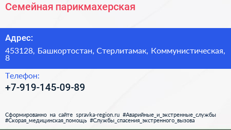 Семейная парикмахерская по адресу 453128, Башкортостан, Стерлитамак, Коммунистическая, 8 в дальнейшем Организация, размещена в следующих категориях: