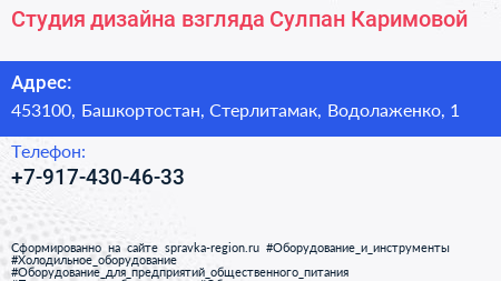 Студия дизайна взгляда Сулпан Каримовой по адресу 453100, Башкортостан, Стерлитамак, Водолаженко, 1 в дальнейшем Организация, размещена в следующих категориях: