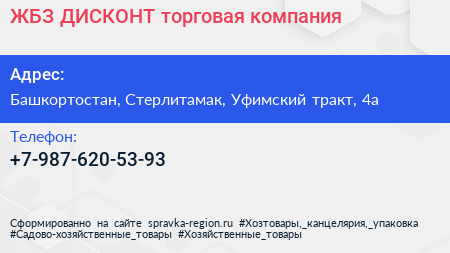 ЖБЗ-ДИСКОНТ, торговая компания по адресу Башкортостан, Стерлитамак, Уфимский тракт, 4а в дальнейшем Организация, размещена в следующих категориях: