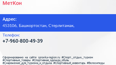МетКон по адресу 453106, Башкортостан, Стерлитамак, в дальнейшем Организация, размещена в следующих категориях: