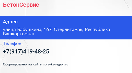БетонСервис по адресу улица Бабушкина, 167, Стерлитамак, Республика Башкортостан в дальнейшем Организация, размещена в следующих категориях: