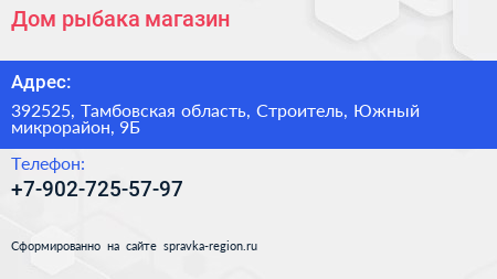 Дом рыбака, магазин по адресу 392525, Тамбовская область, Строитель, Южный микрорайон, 9Б в дальнейшем Организация, размещена в следующих категориях:
