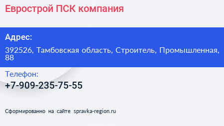 Еврострой ПСК, компания по адресу 392526, Тамбовская область, Строитель, Промышленная, 88 в дальнейшем Организация, размещена в следующих категориях:
