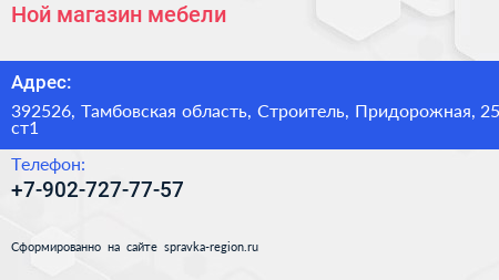 Ной, магазин мебели по адресу 392526, Тамбовская область, Строитель, Придорожная, 25 ст1 в дальнейшем Организация, размещена в следующих категориях: