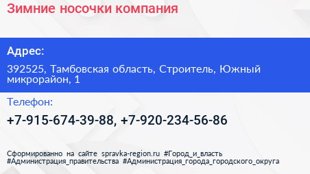 Зимние носочки, компания по адресу 392525, Тамбовская область, Строитель, Южный микрорайон, 1 в дальнейшем Организация, размещена в следующих категориях: