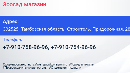 Зоосад, магазин по адресу 392525, Тамбовская область, Строитель, Придорожная, 28 в дальнейшем Организация, размещена в следующих категориях:
