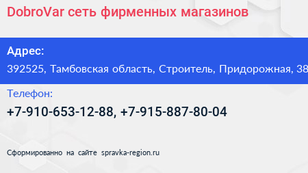 DobroVar, сеть фирменных магазинов по адресу 392525, Тамбовская область, Строитель, Придорожная, 38 в дальнейшем Организация, размещена в следующих категориях: