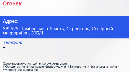 Огонек по адресу 392525, Тамбовская область, Строитель, Северный микрорайон, 30Б/1 в дальнейшем Организация, размещена в следующих категориях: