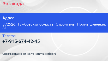 Эстакада по адресу 392526, Тамбовская область, Строитель, Промышленная, 31 в дальнейшем Организация, размещена в следующих категориях: