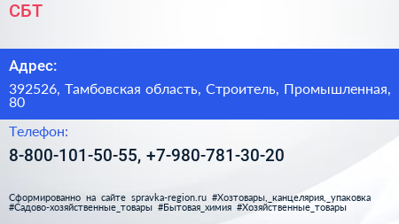 СБТ по адресу 392526, Тамбовская область, Строитель, Промышленная, 80 в дальнейшем Организация, размещена в следующих категориях: