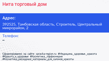 Нита, торговый дом по адресу 392525, Тамбовская область, Строитель, Центральный микрорайон, 2 в дальнейшем Организация, размещена в следующих категориях: