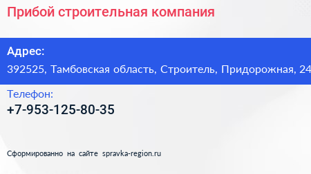 Прибой, строительная компания по адресу 392525, Тамбовская область, Строитель, Придорожная, 24 в дальнейшем Организация, размещена в следующих категориях: