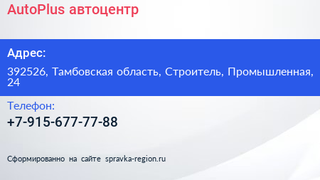 AutoPlus, автоцентр по адресу 392526, Тамбовская область, Строитель, Промышленная, 24 в дальнейшем Организация, размещена в следующих категориях: