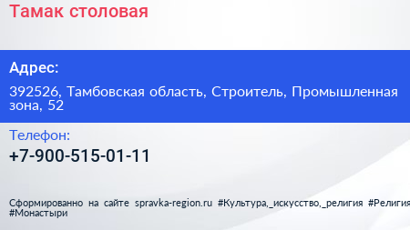 Тамак, столовая по адресу 392526, Тамбовская область, Строитель, Промышленная зона, 52 в дальнейшем Организация, размещена в следующих категориях: