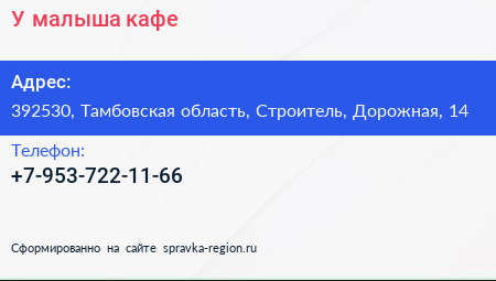 У малыша, кафе по адресу 392530, Тамбовская область, Строитель, Дорожная, 14 в дальнейшем Организация, размещена в следующих категориях: