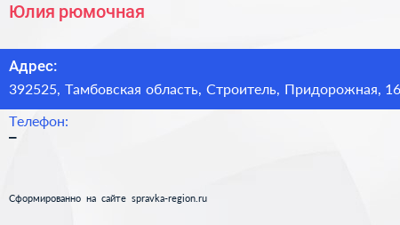 Адрес: Тамбовская область, Строитель, Промышленная зона, 52