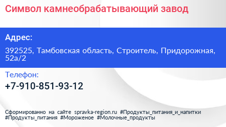 Символ, камнеобрабатывающий завод по адресу 392525, Тамбовская область, Строитель, Придорожная, 52а/2 в дальнейшем Организация, размещена в следующих категориях: