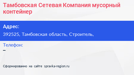 Тамбовская Сетевая Компания, мусорный контейнер по адресу 392525, Тамбовская область, Строитель, в дальнейшем Организация, размещена в следующих категориях: