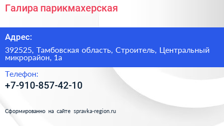 Галира, парикмахерская по адресу 392525, Тамбовская область, Строитель, Центральный микрорайон, 1а в дальнейшем Организация, размещена в следующих категориях: