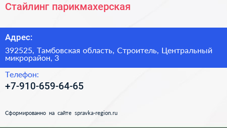 Стайлинг, парикмахерская по адресу 392525, Тамбовская область, Строитель, Центральный микрорайон, 3 в дальнейшем Организация, размещена в следующих категориях: