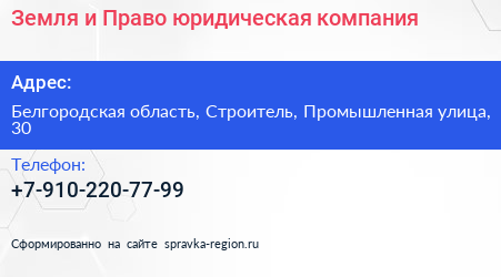 Земля и Право, юридическая компания по адресу Белгородская область, Строитель, Промышленная улица, 30 в дальнейшем Организация, размещена в следующих категориях: