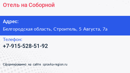Отель на Соборной по адресу Белгородская область, Строитель, 5 Августа, 7а в дальнейшем Организация, размещена в следующих категориях: