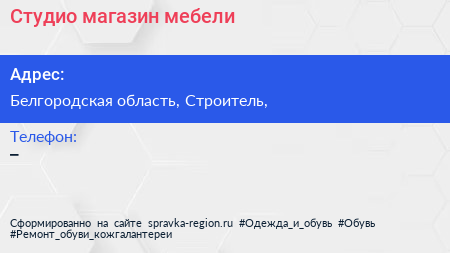 Студио, магазин мебели по адресу Белгородская область, Строитель, в дальнейшем Организация, размещена в следующих категориях: